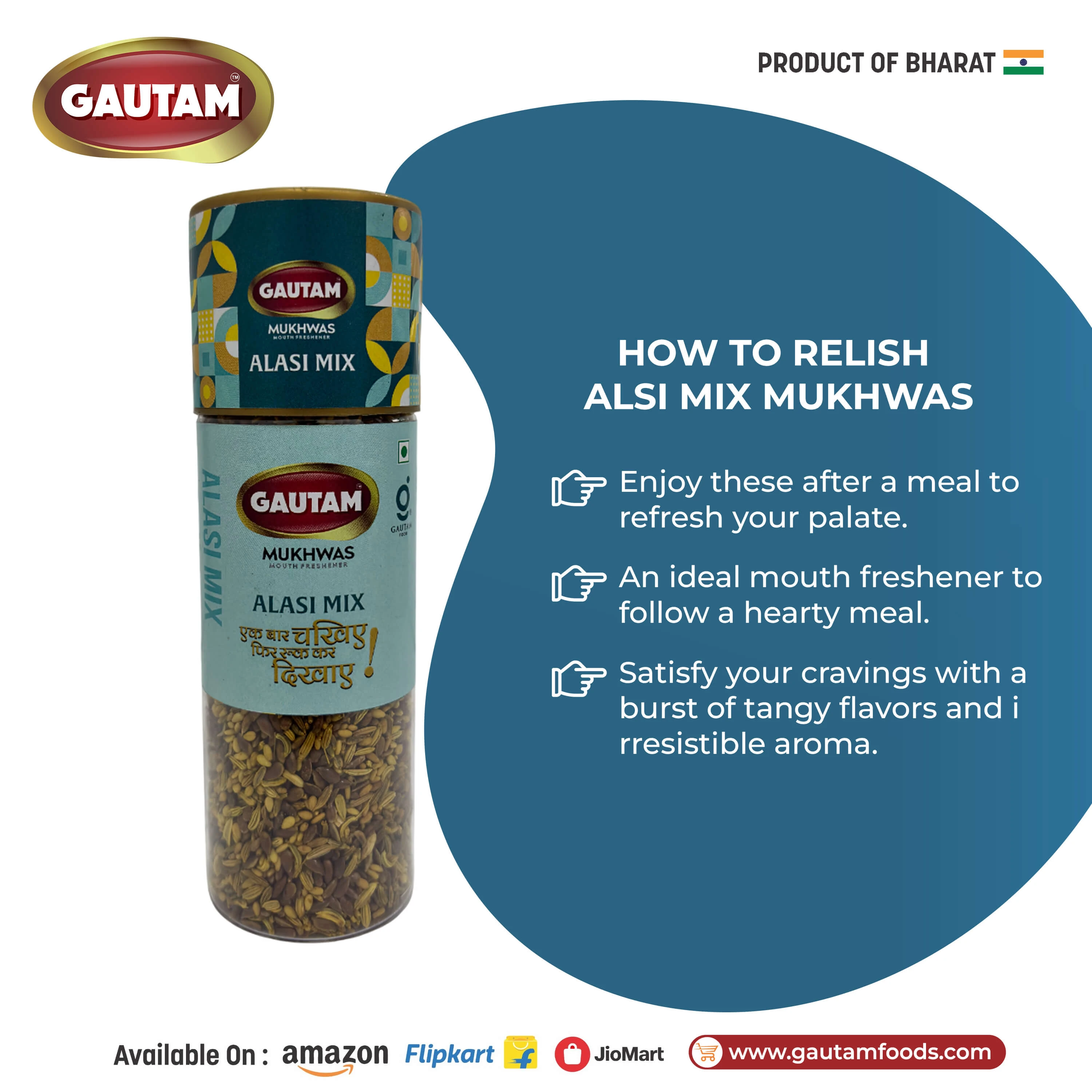 Take a small pinch of Alsi Mix Mukhwas after meals and chew slowly to enjoy a refreshing taste while aiding digestion. Perfect for home use, gifting, or on-the-go freshness.