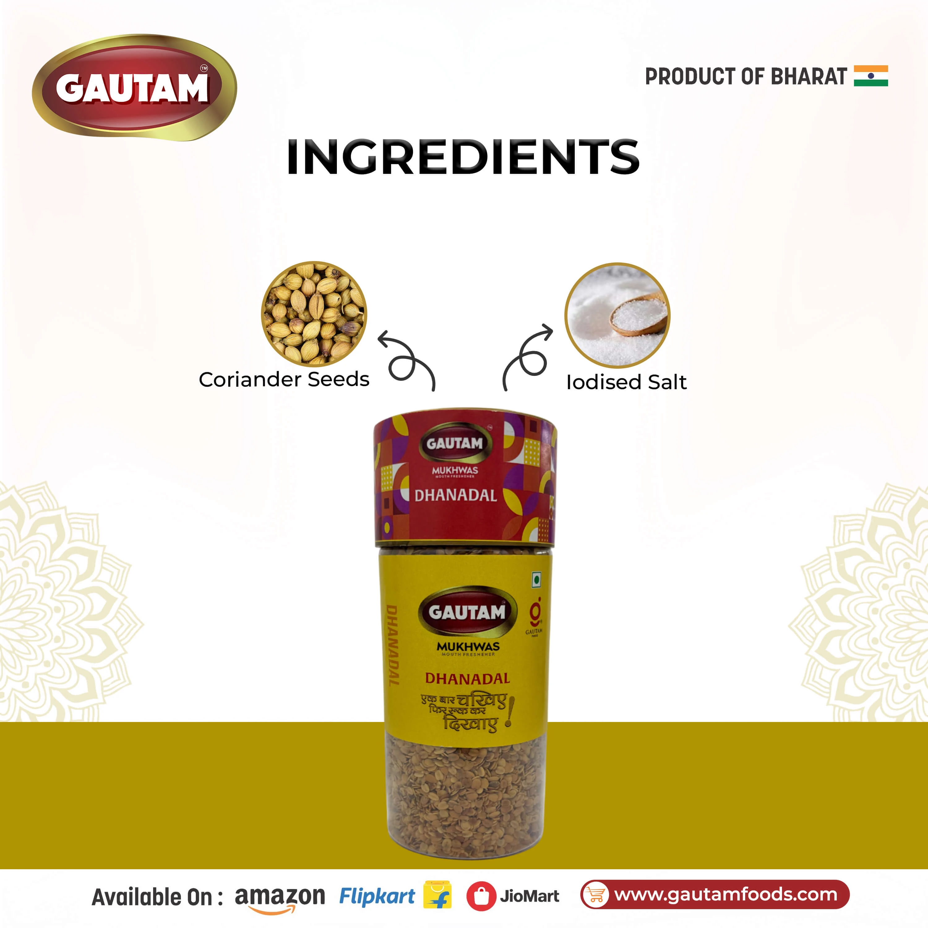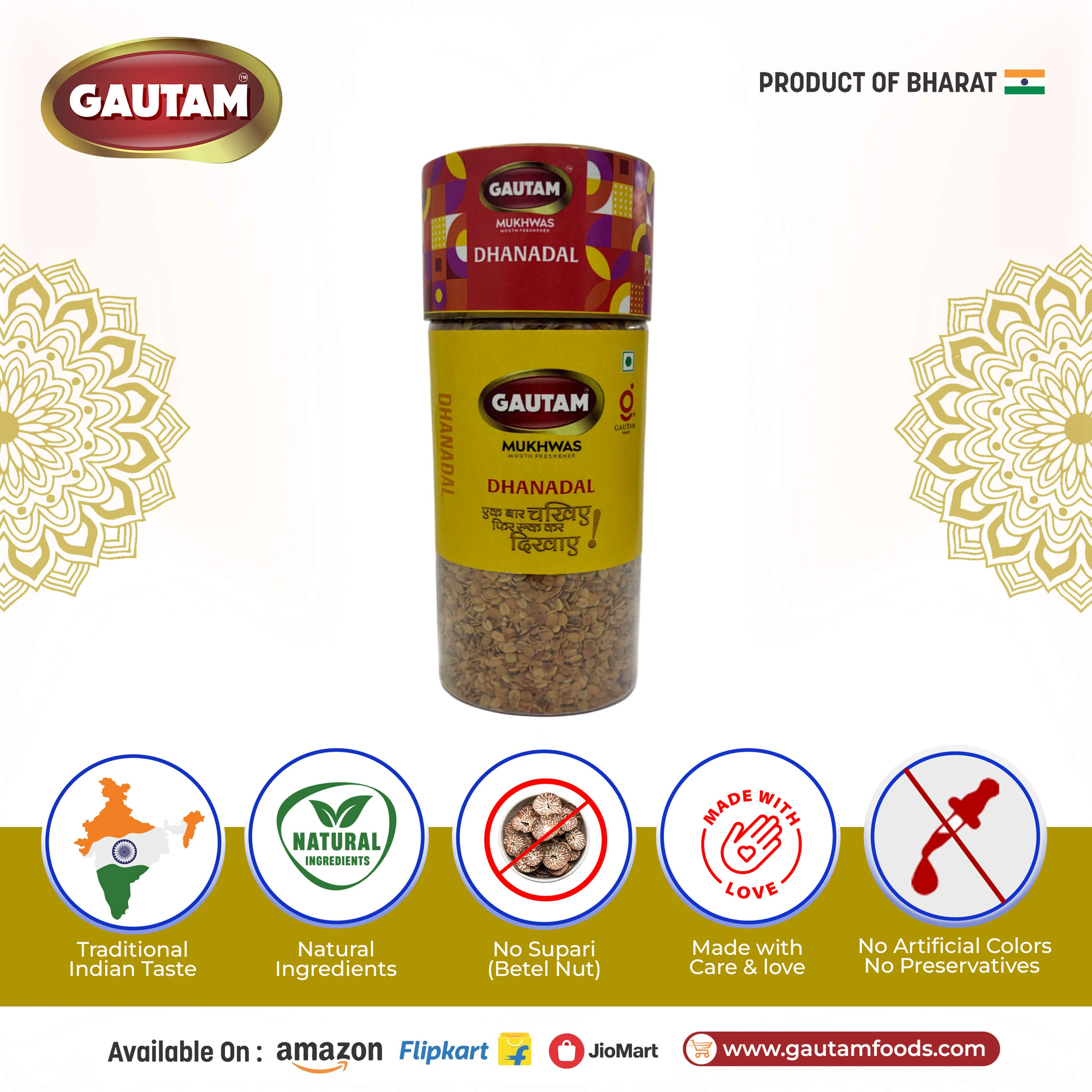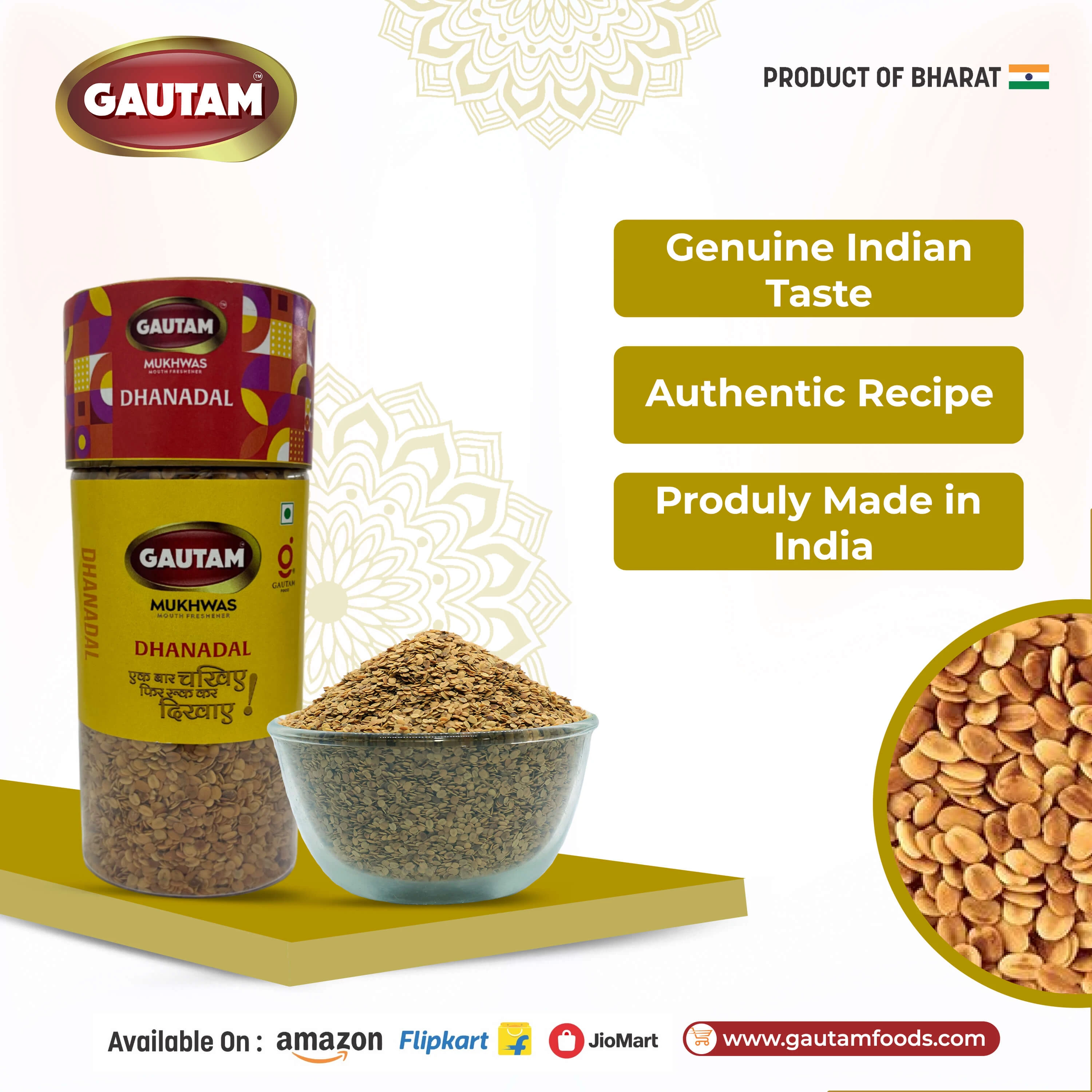 Gautam Dhanadal Mukhwas is a simple yet traditional Indian mouth freshener made from carefully selected premium coriander seeds. Known for its light flavor and digestive properties, Dhanadal is widely enjoyed after meals for refreshing breath and supporting digestion.