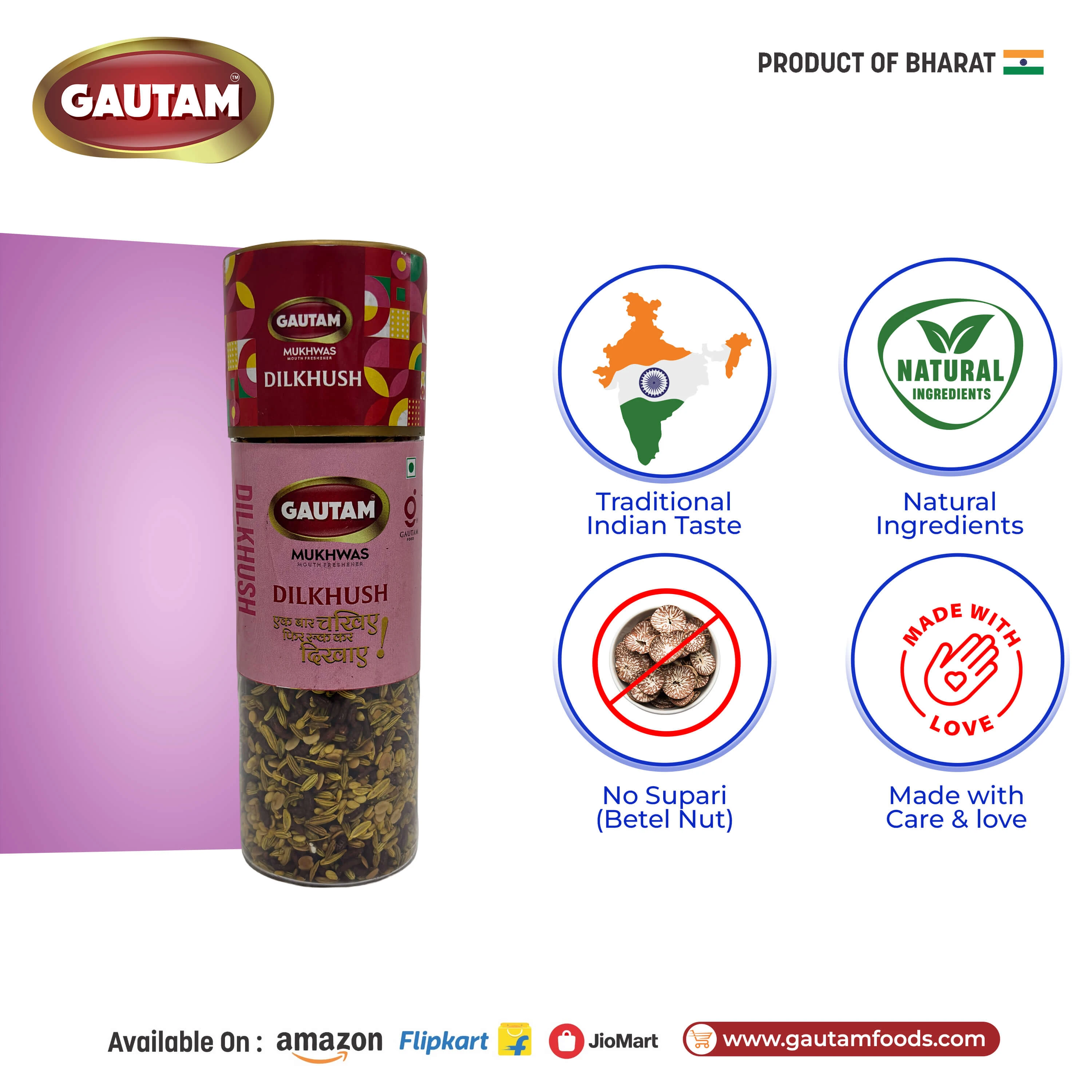 Gautam’s Dilkhush Mukhwas is truly royal — rich, aromatic, and full of traditional charm. A king-style treat that brings back the taste of royalty!