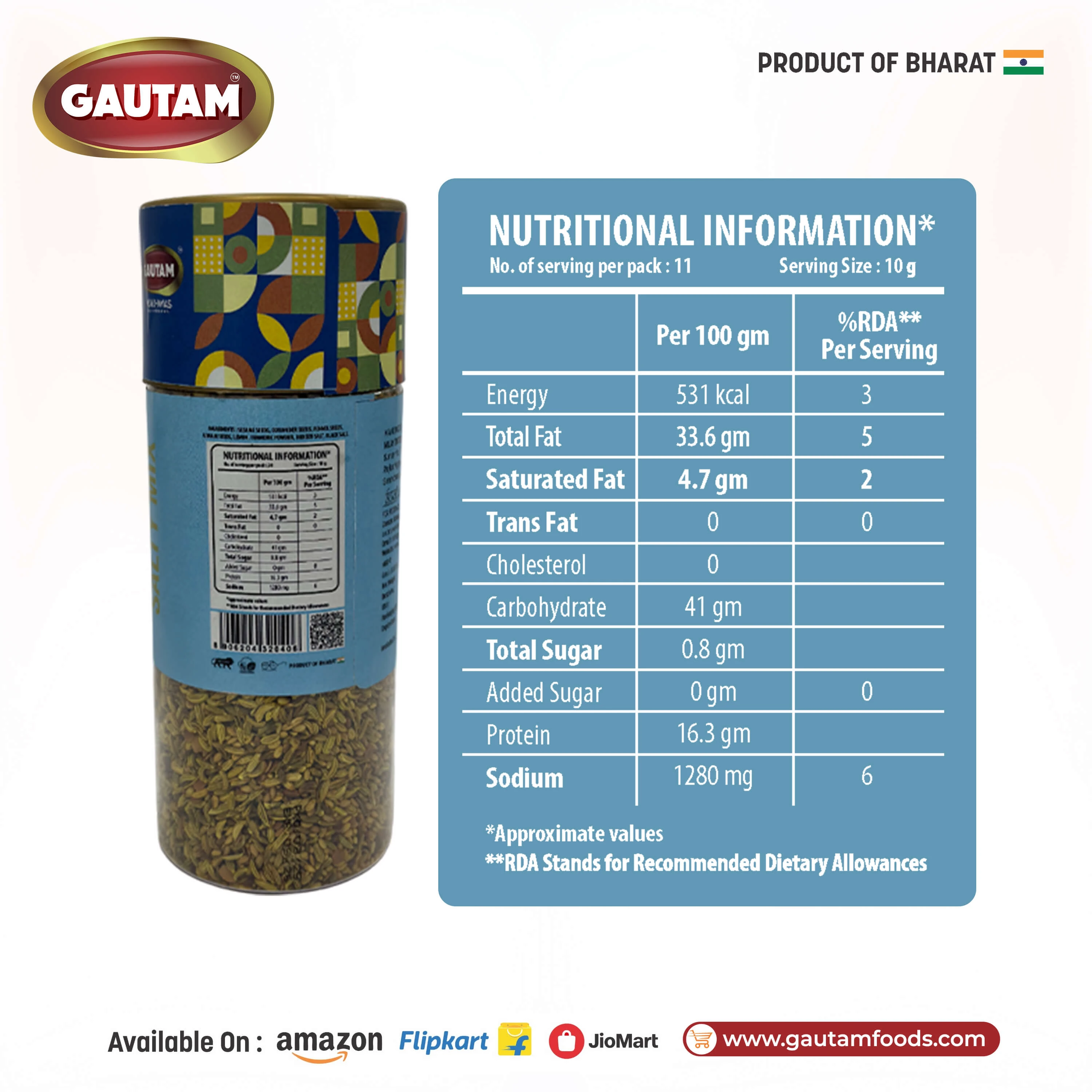 Gautam Salty Mix Mukhwas is a traditional Gujarati-style mouth freshener made with a perfect blend of premium seeds and spices. This classic mix combines sesame seeds, coriander seeds, fennel seeds, and ajwain seeds to deliver an authentic taste along with digestive benefits.