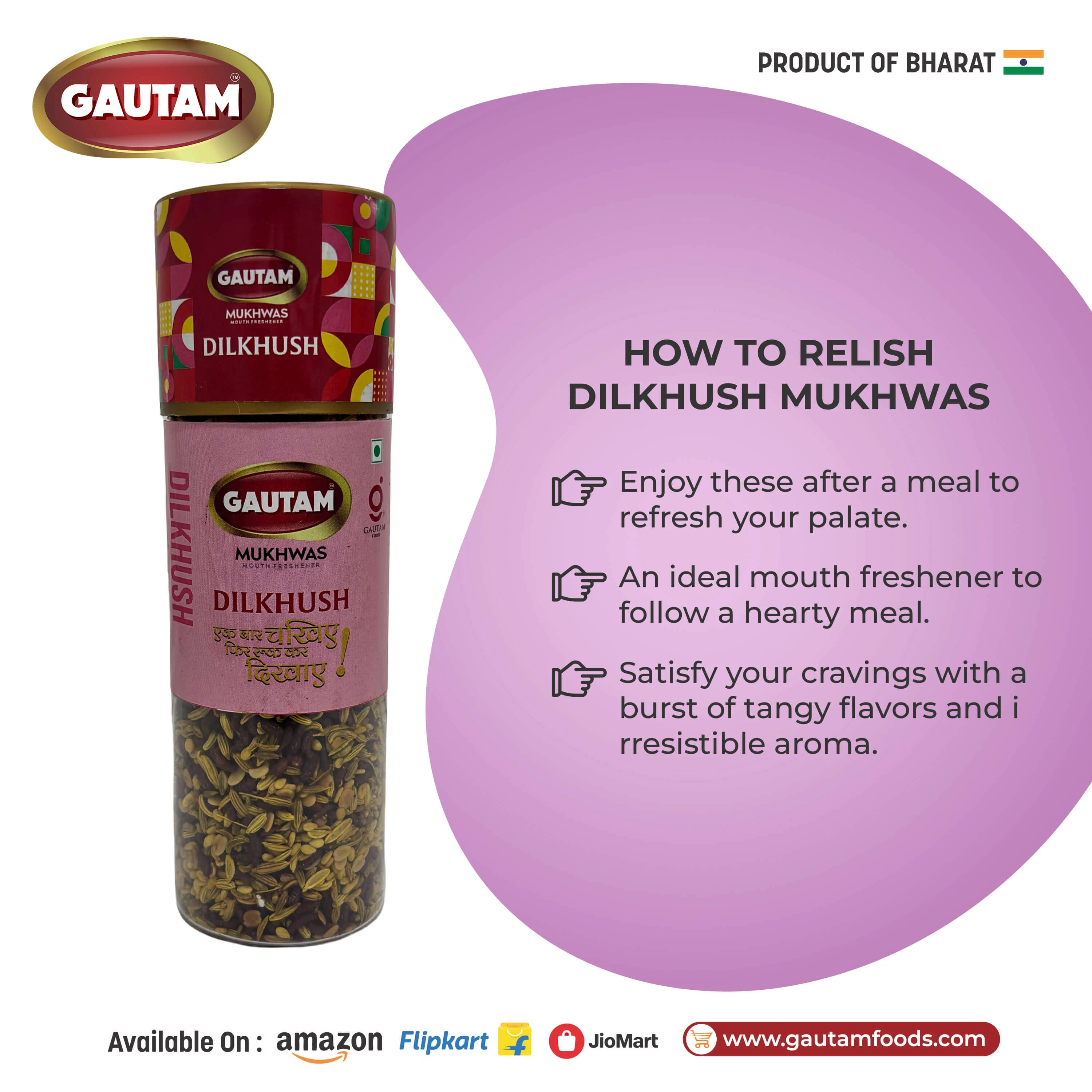 Gautam’s Dilkhush Mukhwas is truly royal — rich, aromatic, and full of traditional charm. A king-style treat that brings back the taste of royalty!