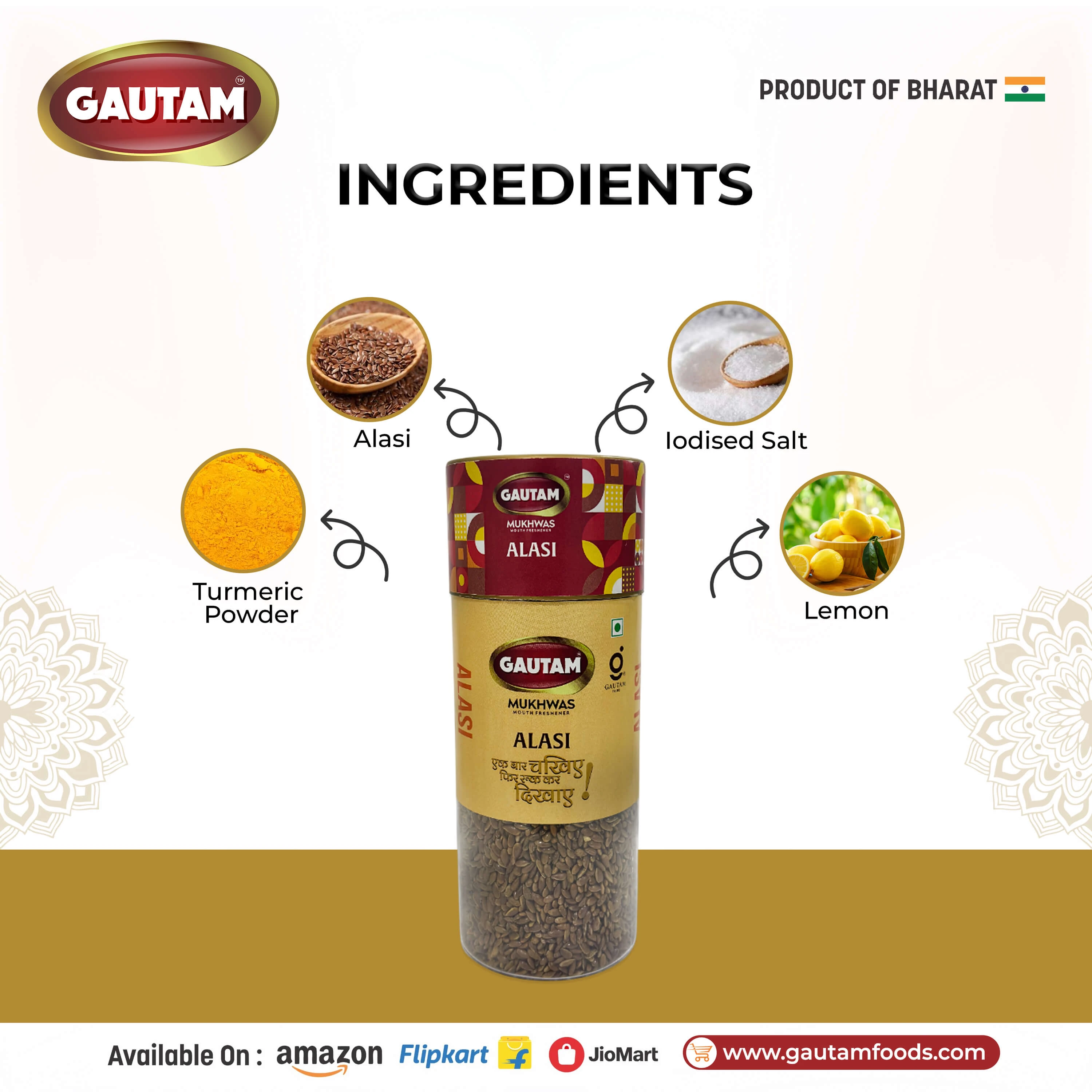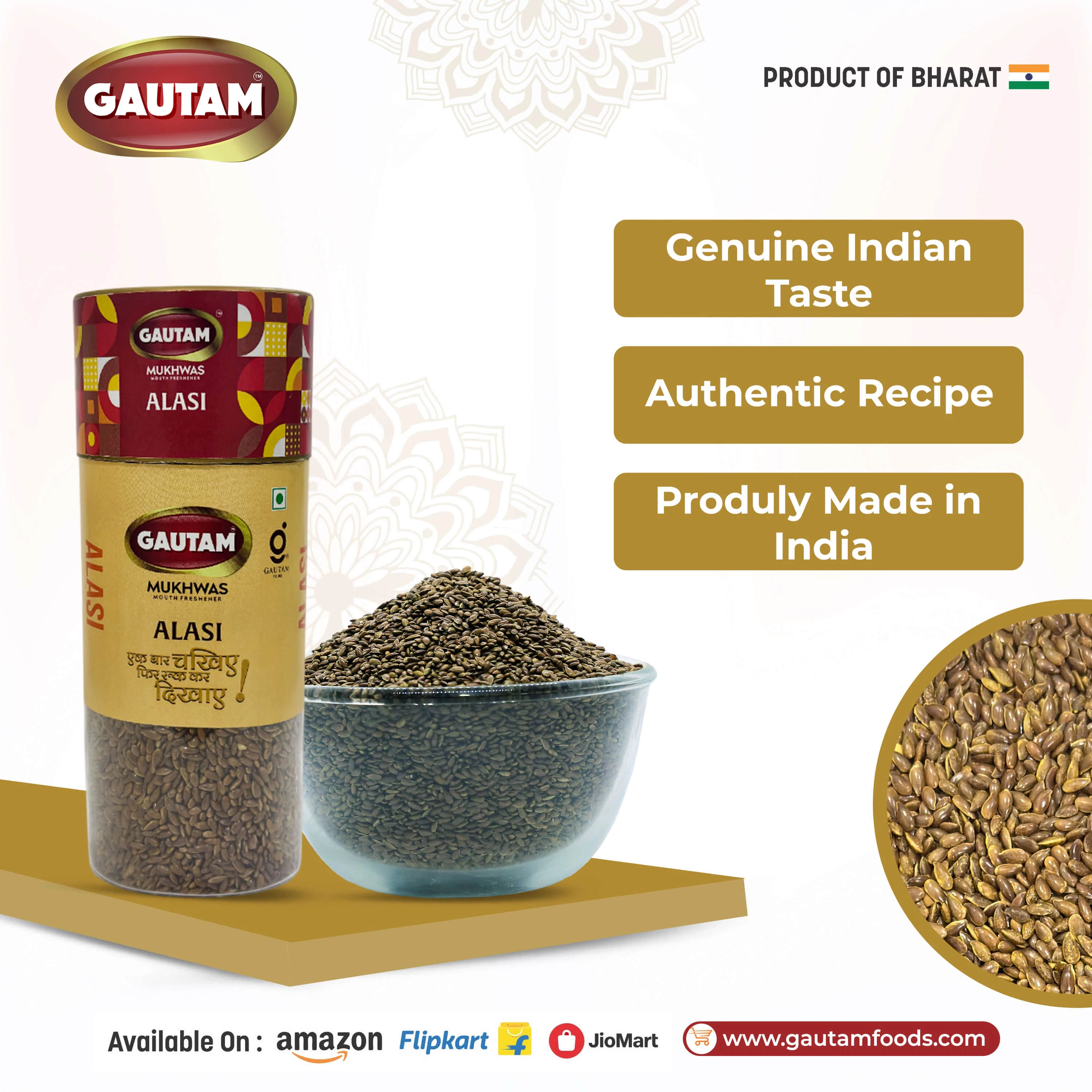Enjoy Gautam Alsi Mukhwas after meals to experience a natural mouth refreshment along with the goodness of traditional ingredients.