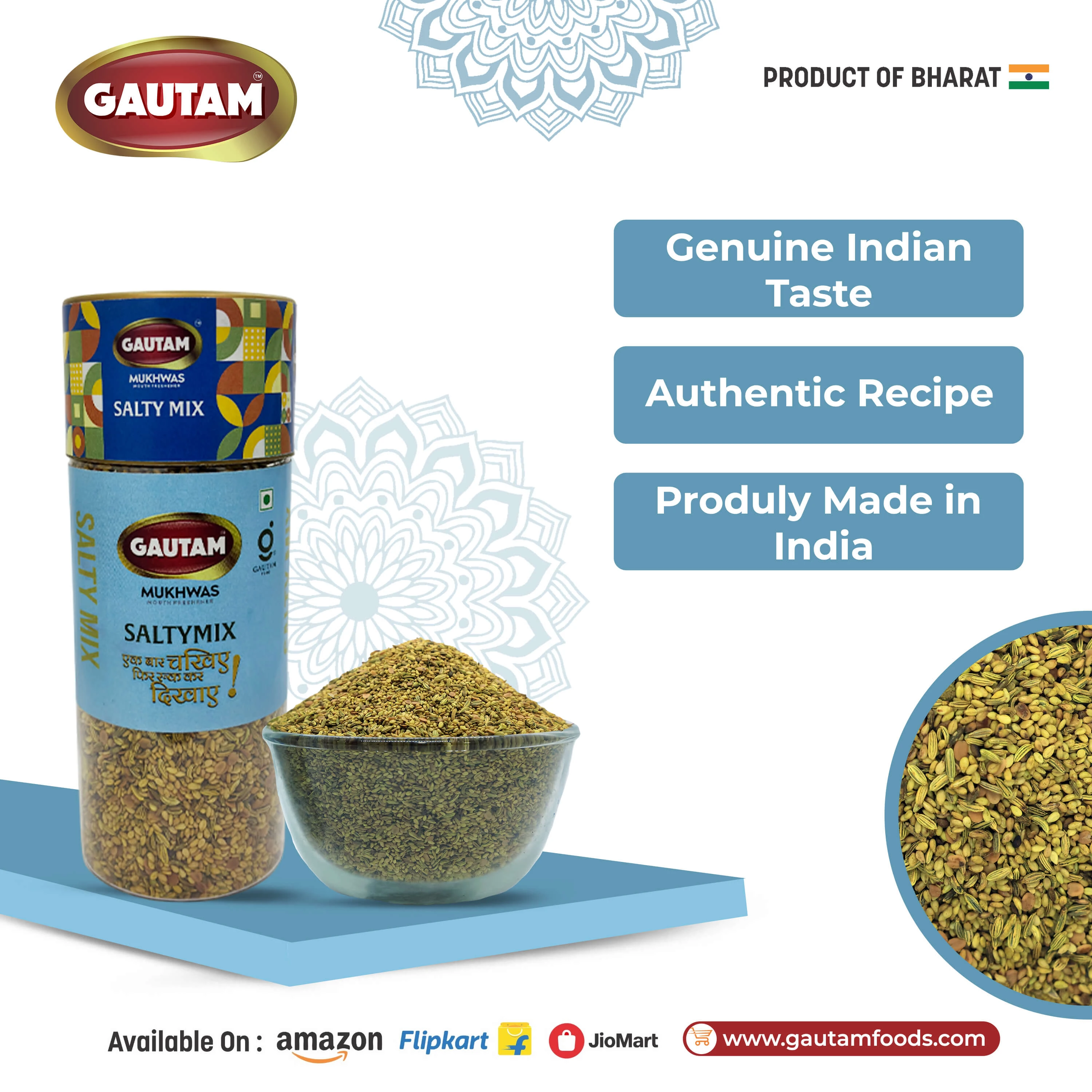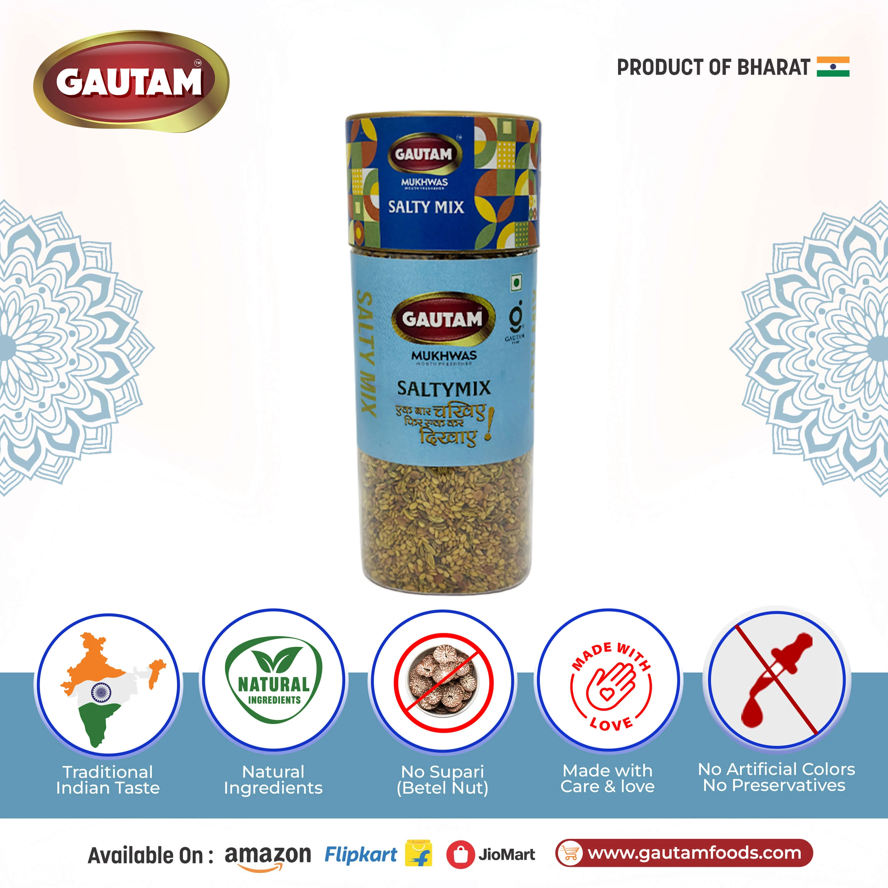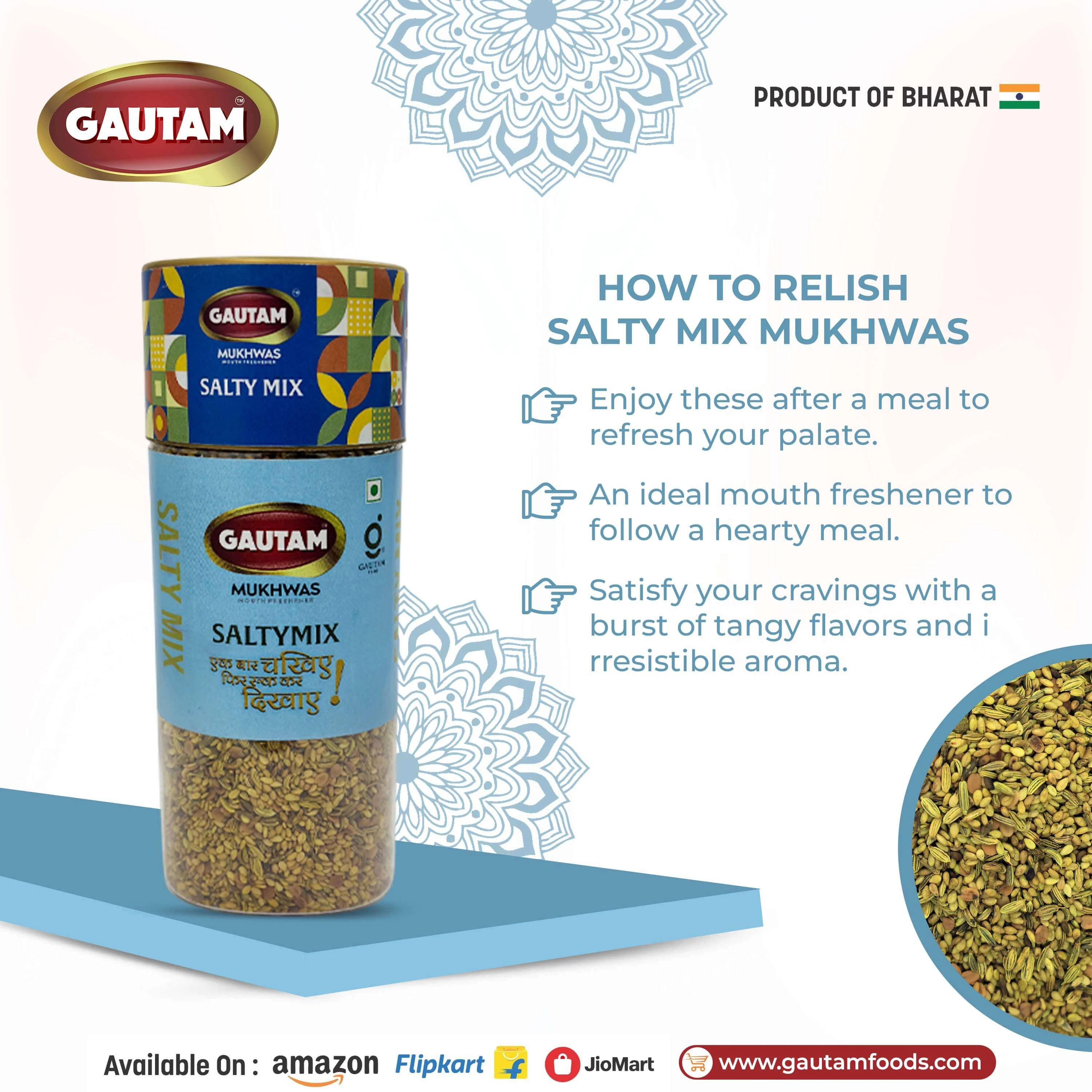 Enjoy Gautam Salty Mix Mukhwas after meals for a refreshing and digestive experience rooted in Indian tradition.